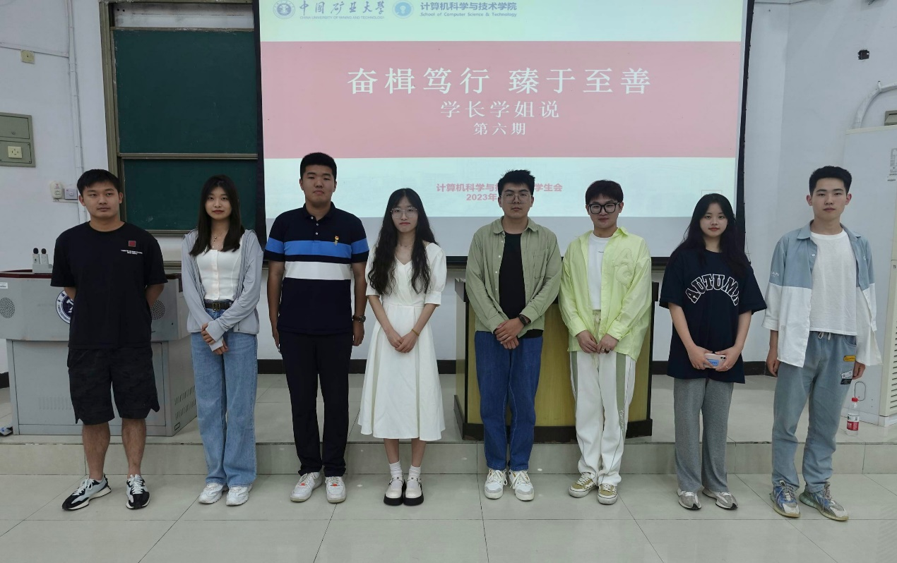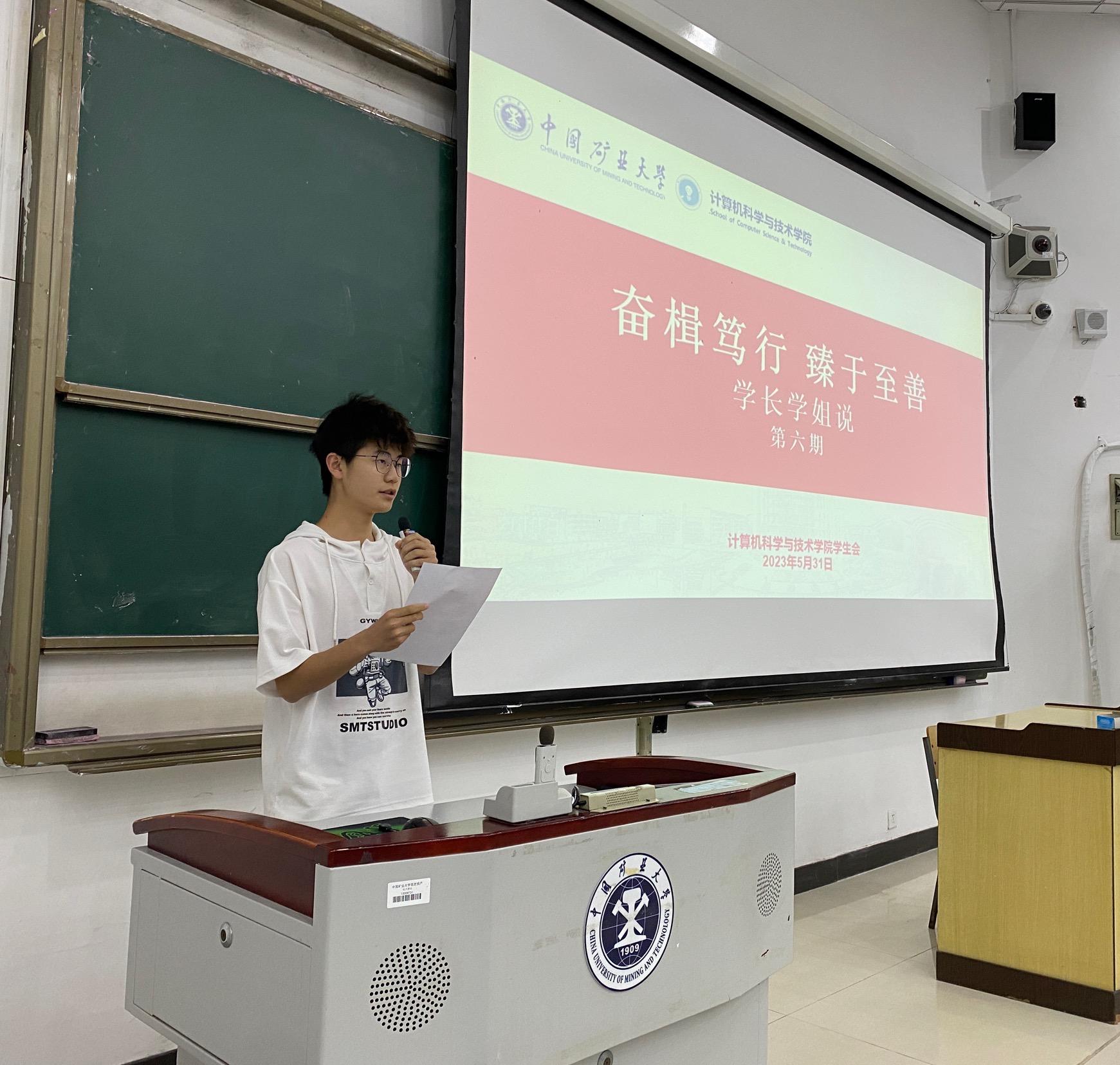 2023年5月31日19点,计算机学院学生会在博二C102开展了力行学子报告团“学长学姐说”系列活动第六期。本期“学长学姐说”以“奋楫笃行 臻于至善”为题,邀请到了三位校力行学子报告团的学长学姐:周青莹、陈硕、杜宏宇,为大家分享大学路上的点点滴滴,并为我们解答如何进行暑期实践,参加竞赛,以及在大学生活中如何提升自己。